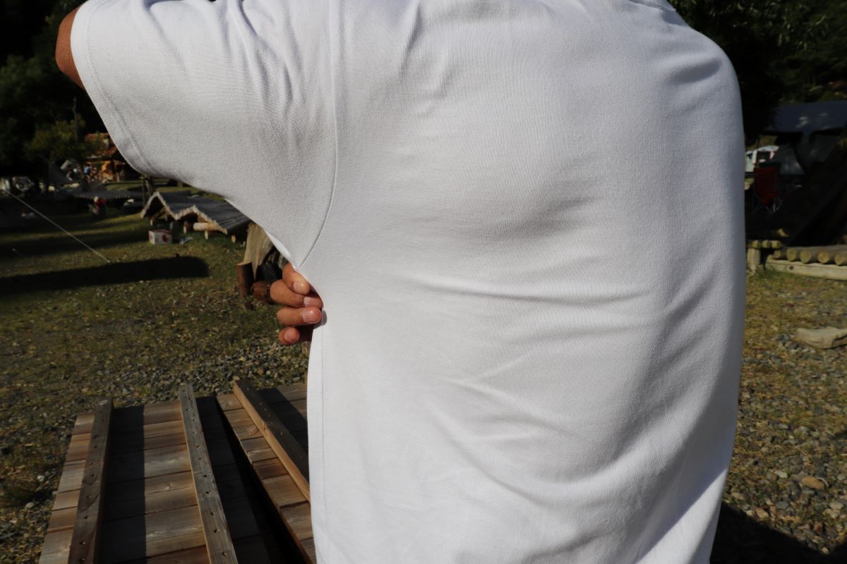 私たちの白Tは汗ジミしにくいとうたっております。