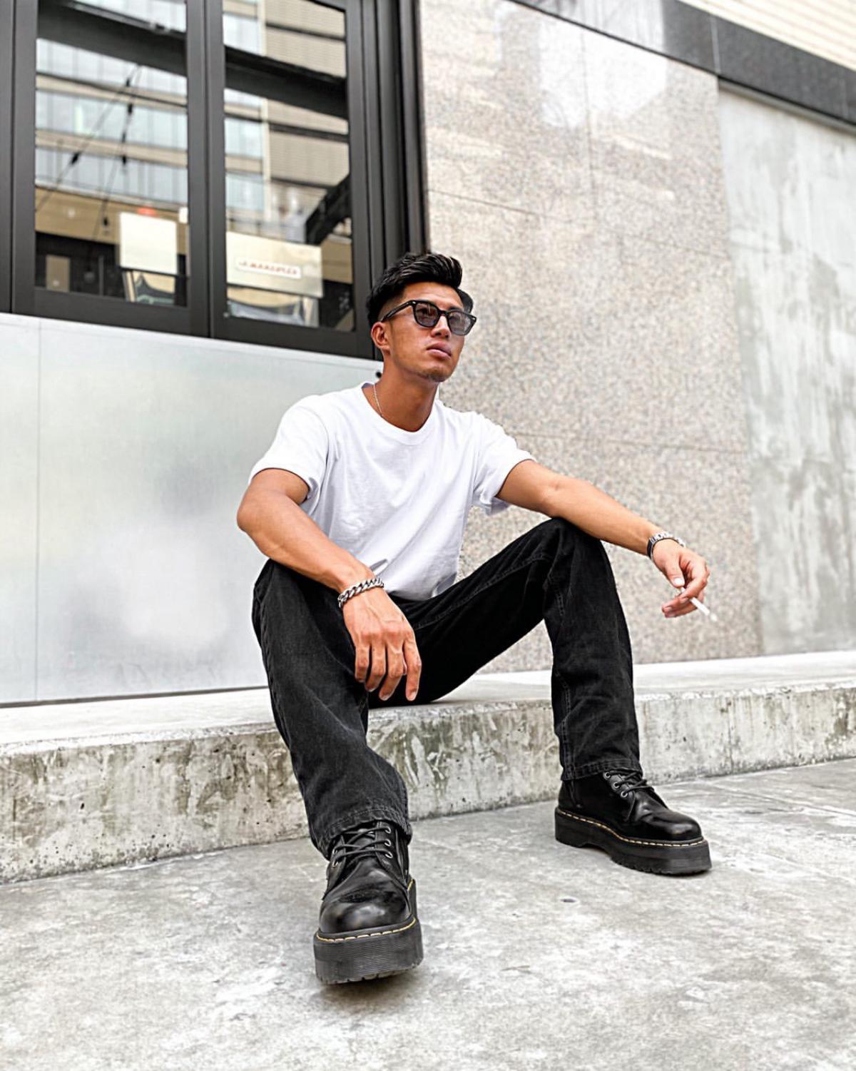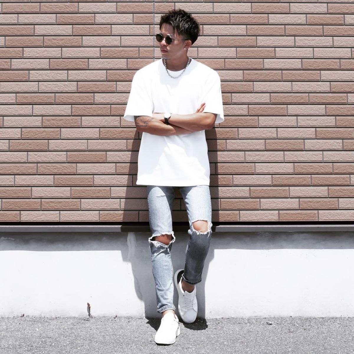 白Tとパンツといった、シンプルなコーデの中でパっと見でカッコ良いってなるのはやはり全体のシルエットです。