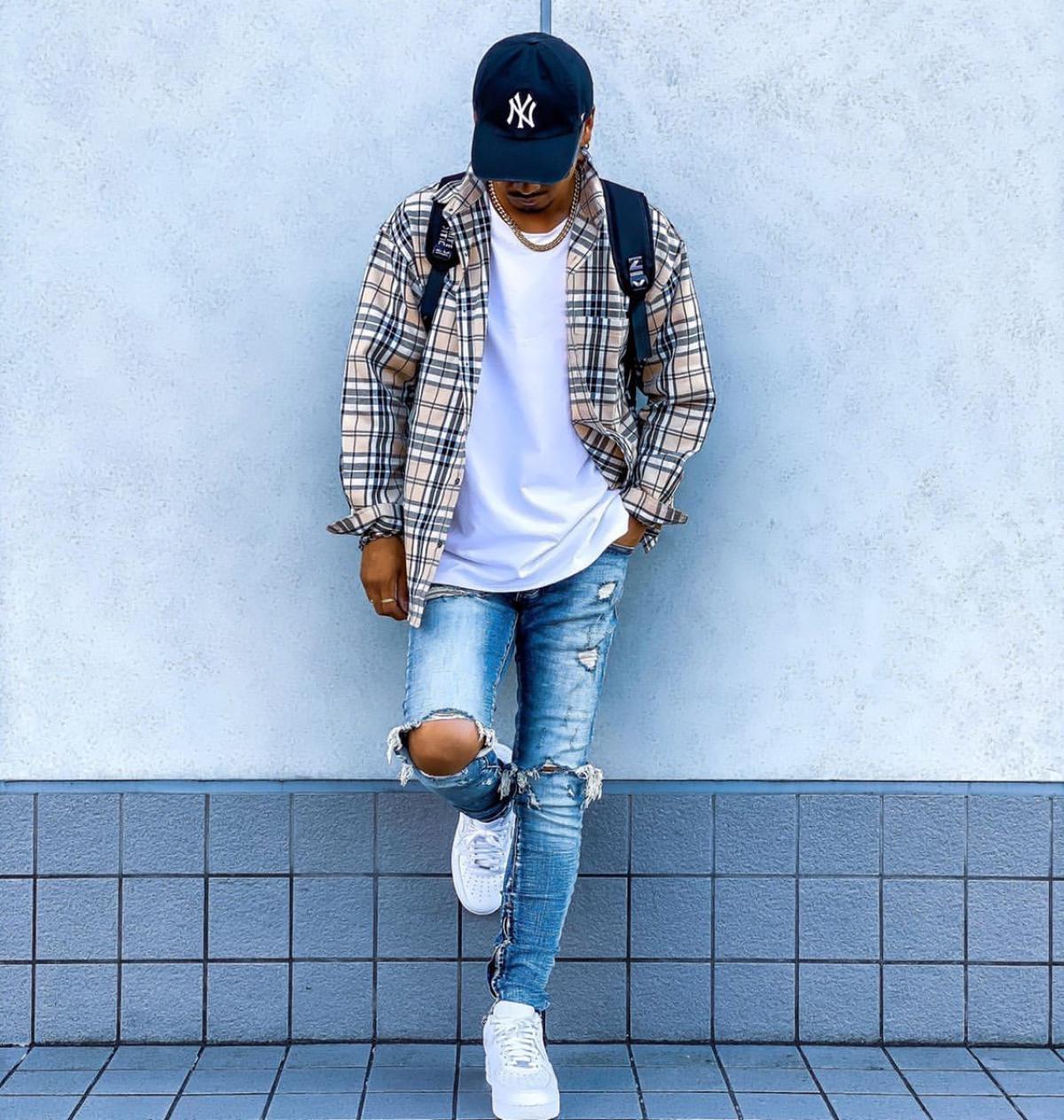 夏の定番デニムに白Tにこの写真の様な秋にピッタリチェック柄シャツを羽織ると一気に秋のオシャレコーデに!!