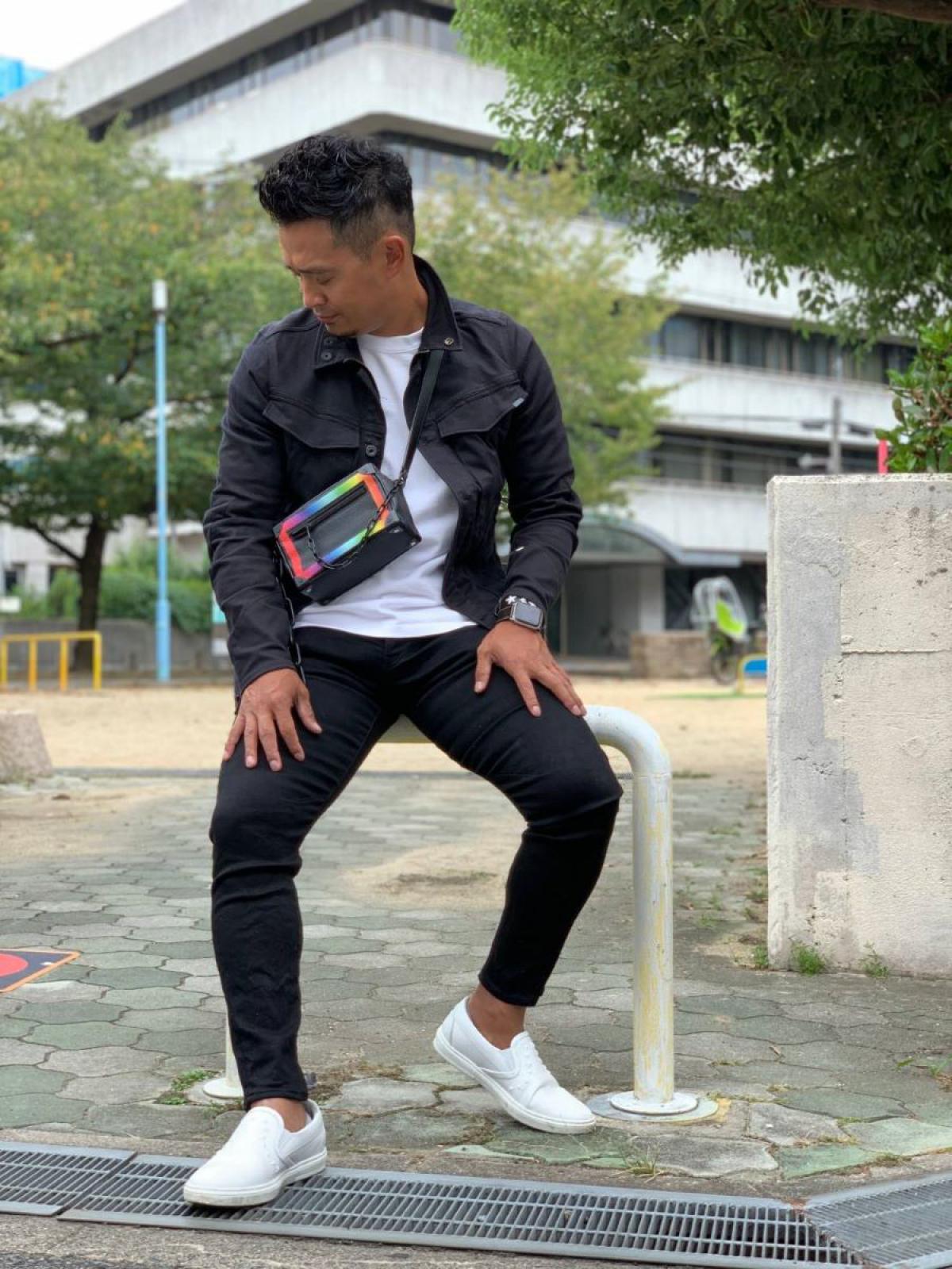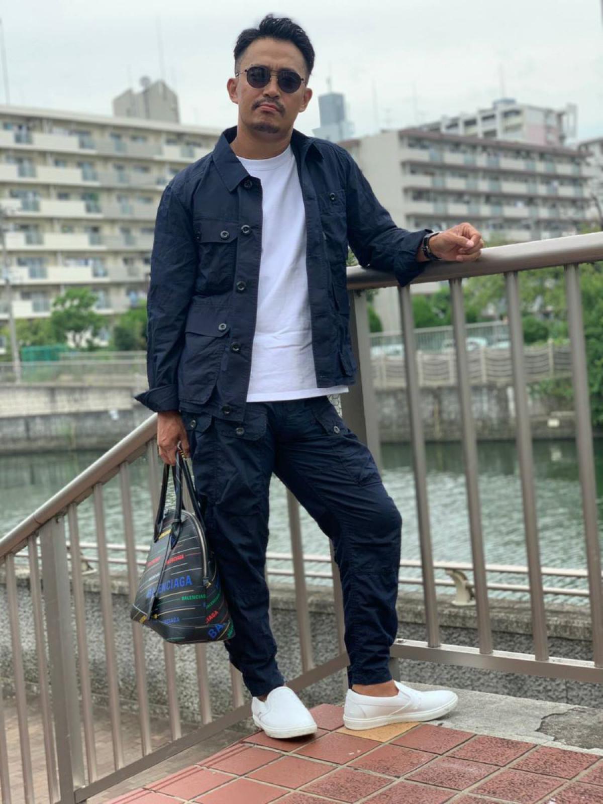 セットアップのデザイン性を損なわない為には、白Tを合わせれば間違いなし!