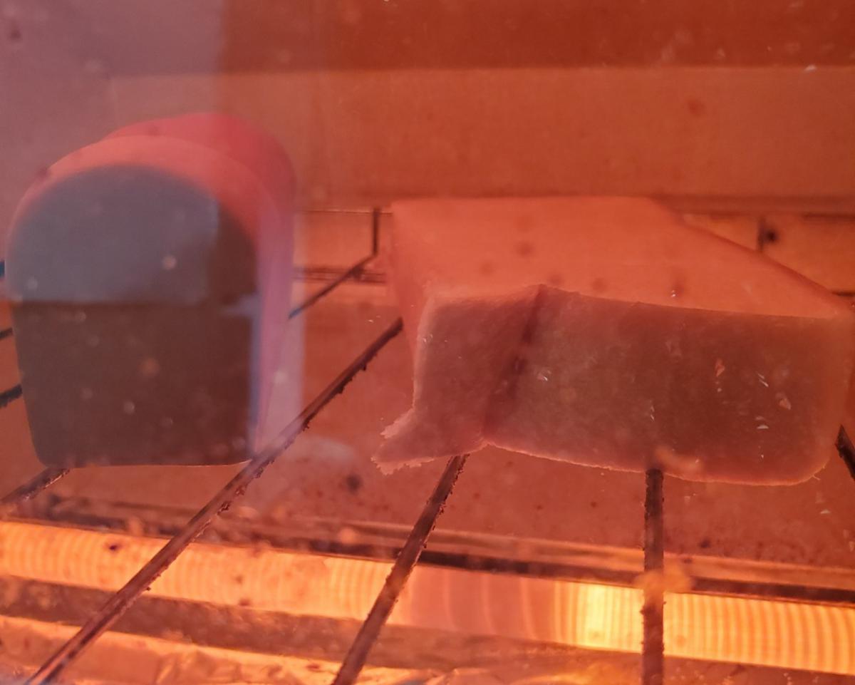使い方は簡単でした。焼く前にこの小さなパン型スチーマーを水に20秒漬ける。いつも通りにトースターで焼く。